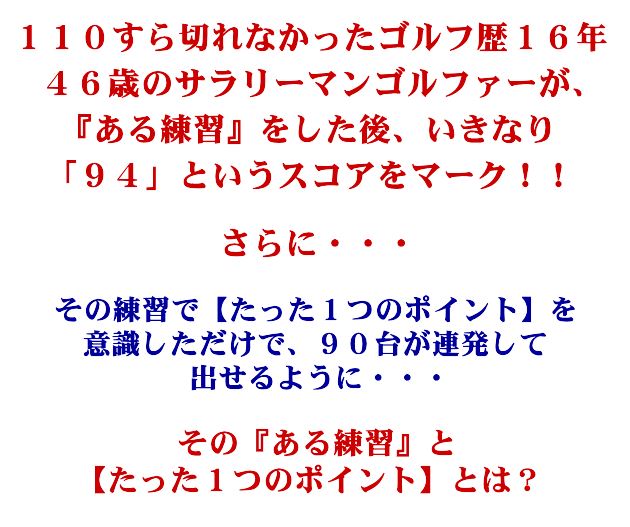 練習時にその【ポイント】を意識する事で、スイングがシンプルでシャープになり、ダフリ、トップ、チョロ、スライス、飛距離不足が驚くほど楽に改善できてしまうのです。