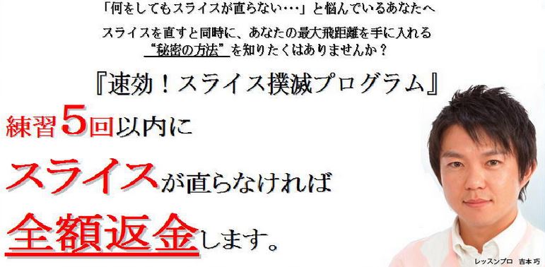 「スライス撲滅プログラム」では、そんな悩みを解消すべく、スライスを克服するための「具体的な方法」をシンプルに分かりやすく解説しています。